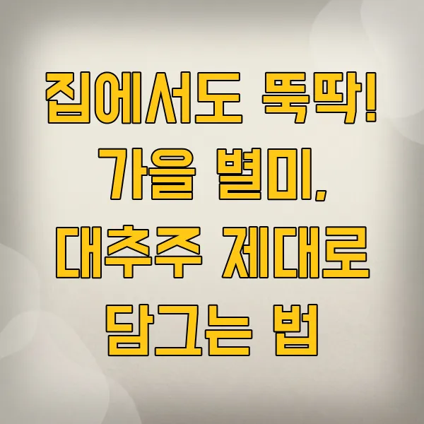 쌀쌀해지는 날씨에 따뜻한 온기가 그리워지는 계절이 다가오고 있죠. 이럴 때 집에서 직접 담가 먹는 술 한 잔은 정말 특별한 경험이 될 수 있거든요. 특히 한국에서 가을에 빼놓을 수 없는 과일, 대추를 활용한 대추주는 달콤하면서도 깊은 풍미를 자랑하는데요. 한번쯤 '나도 대추주 한번 만들어볼까?' 생각했지만, 막상 어떻게 시작해야 할지 막막하셨다면 잘 오셨어요. 오늘은 집에서도 누구나 쉽게 따라 할 수 있는 대추주 담그는 비법을 상세하게 알려드릴 테니, 올가을은 향긋한 대추주와 함께 특별하게 보내보자고요.